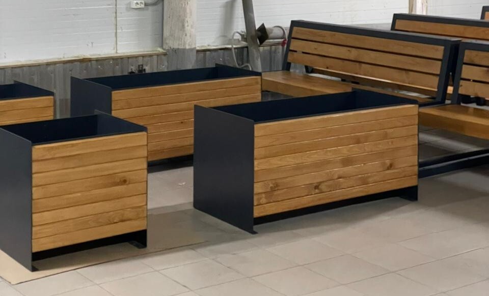 Все изделия изготовлены на нашем производстве в Екатеринбурге. Перед отгрузкой каждая скамья, вазон, урна прошла контроль качества и сборку в цехе.